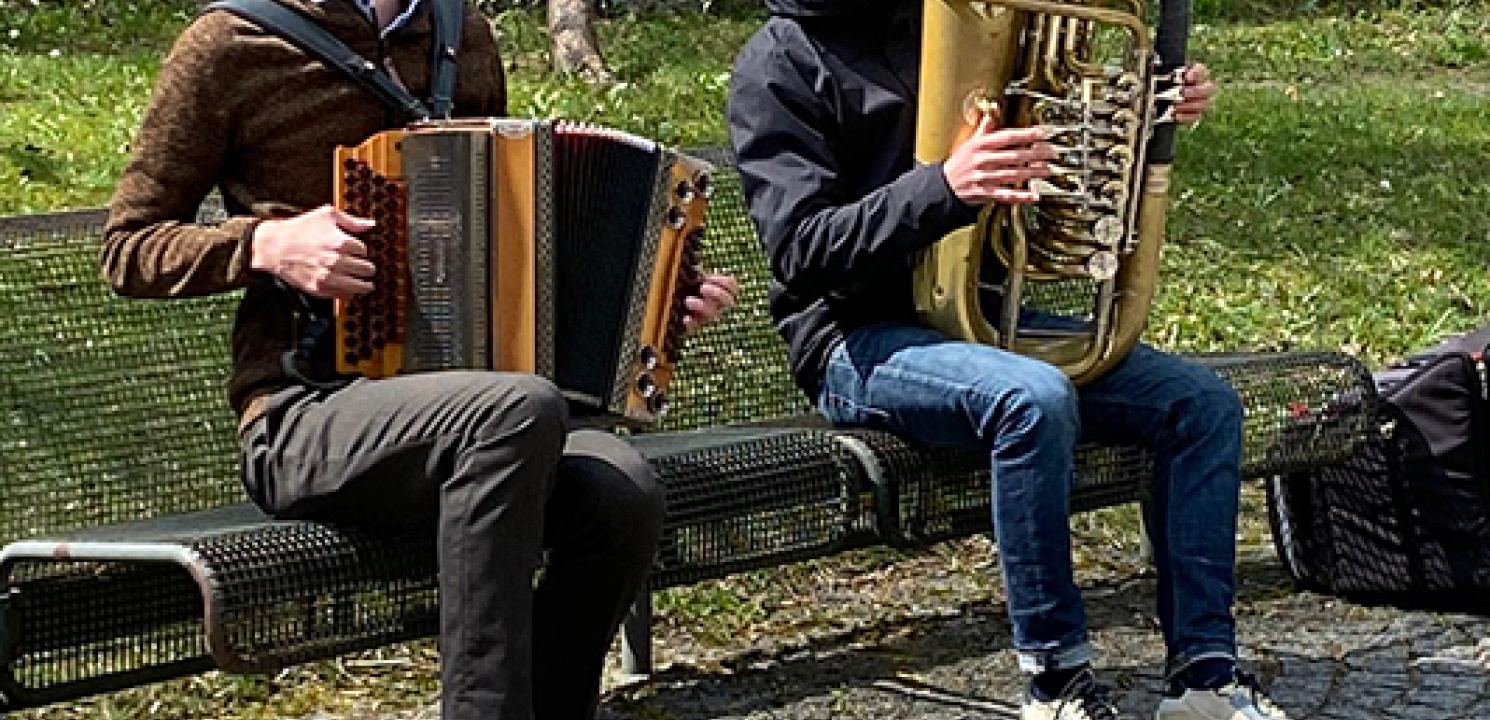 Nach der erfolgreichen Impfaktion im Quartier Mitterfeldstraße am 13.04.2021 erfolgte am 15.04.2021 ein beschwingtes Konzert mit dem "Almrausch" Duo (Andreas Winkler - Steir. Harmonika und Florian Mayrhofer - Tuba). Wieder haben es die Organisatoren geschafft eine kleine Gruppe Musiker zu uns ins Quartier zu holen und den Menschen eine Freude zu machen. Die Musik von Almrausch war so schmissig, dass man nicht anders konnte, als sich im Takt dazu zu bewegen.