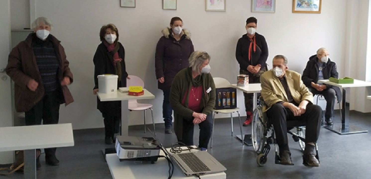 Wo gibt es denn sowas??? Na, bei uns im Quartier. Zum ersten Mal wieder ein Treffen in Präzens, natürlich coronakonform auf Abstand, in einer Online-Veranstaltung in unserem Multifunktionsraum.